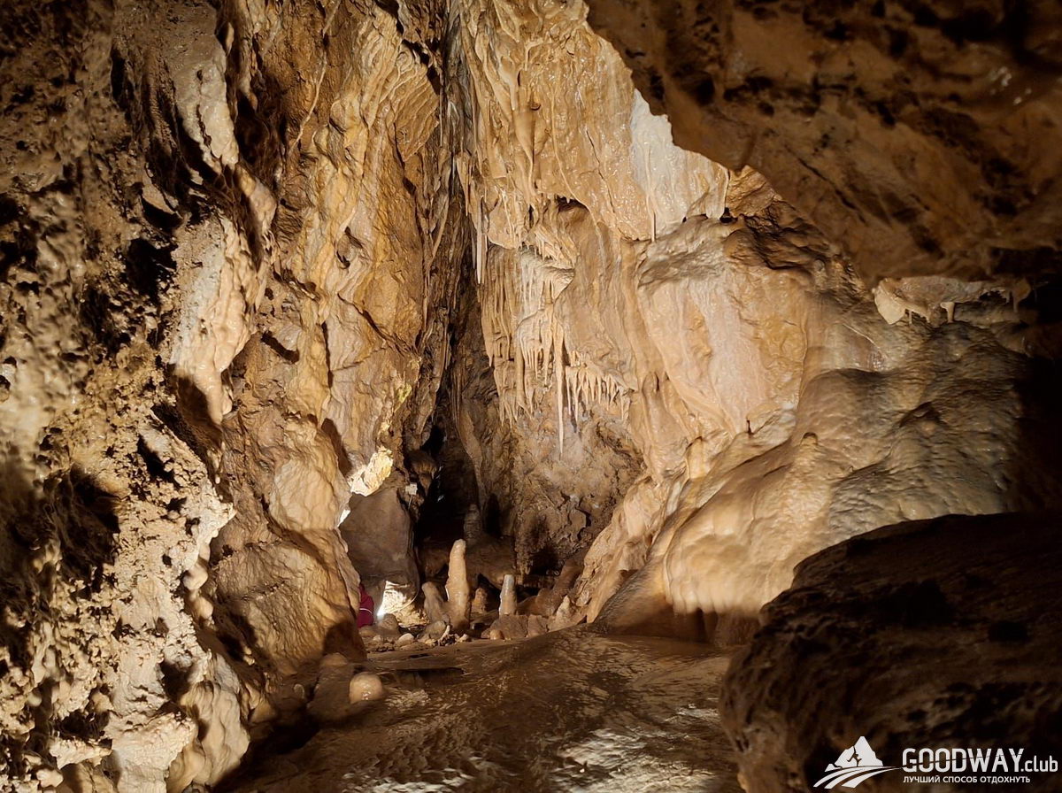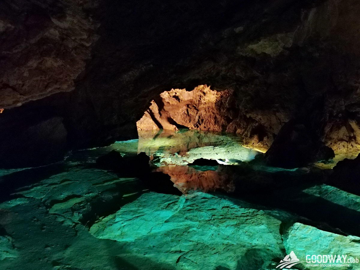 Сменим обстановку. Начнём день с 45-минутной экскурсии по оборудованной доломитовой пещере Бозковская. Кроме сталактитов, сталагмитов и лабиринтов здесь есть большое озеро! С цветной подсветкой выглядит божественно!