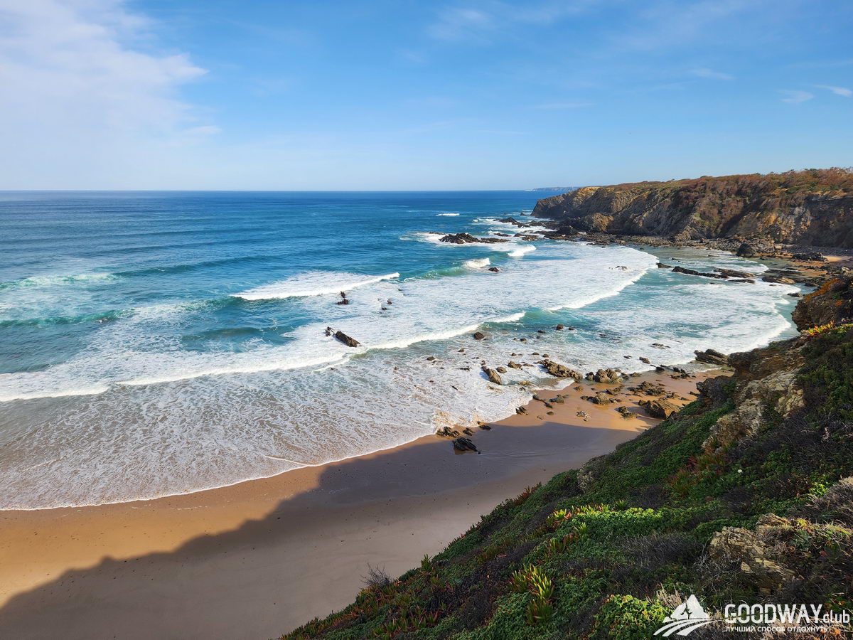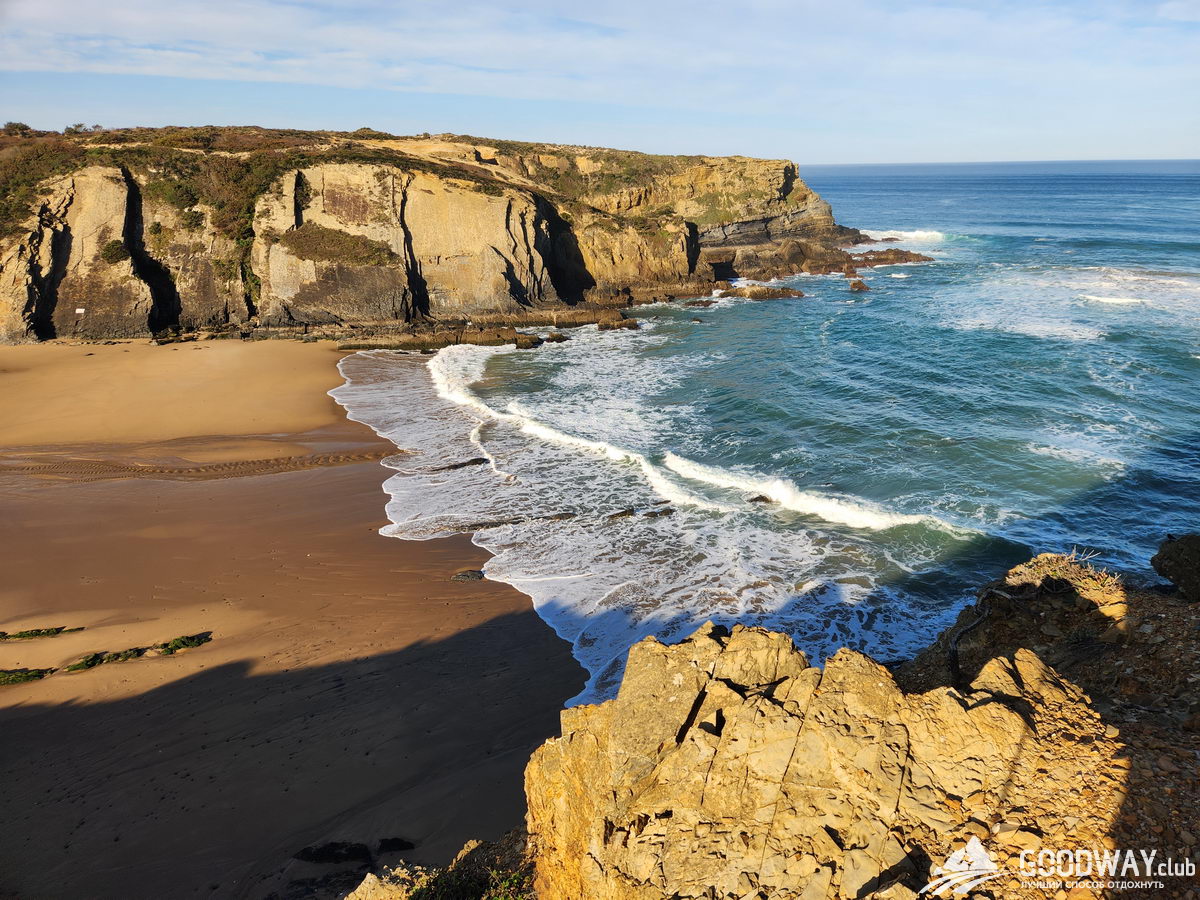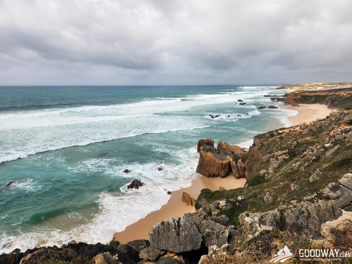 Автобусом на 9 утра едем в Синеш и затем в Сао-Торпес. Сегодня лёгкий разгонный день, который сразу начнётся с обширных пляжей. Можно купаться и попробовать бодисерфинг – катание на волнах без доски. Температура воды 15-19 градусов, зависит от сезона. Далее тропа забирается на скалы, и мы будем обозревать сверху всё мощнейшее великолепие океана.