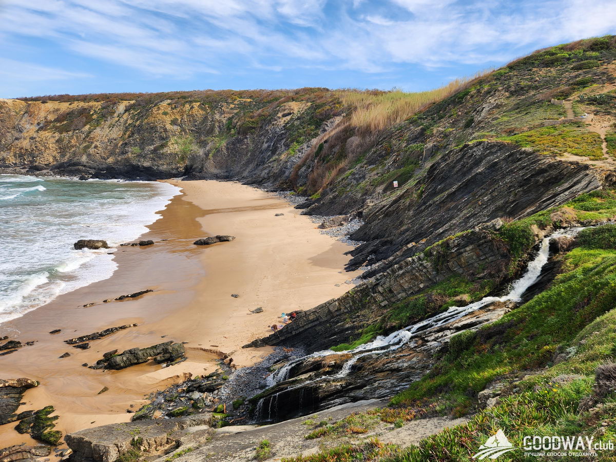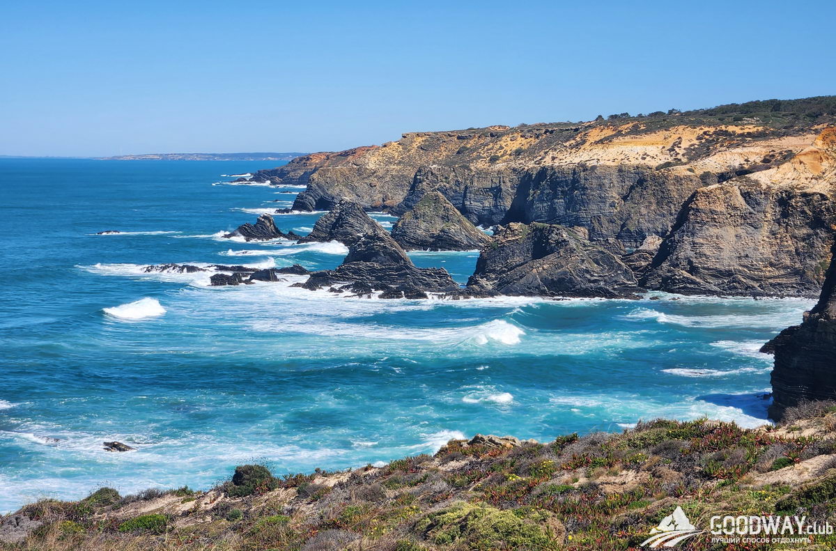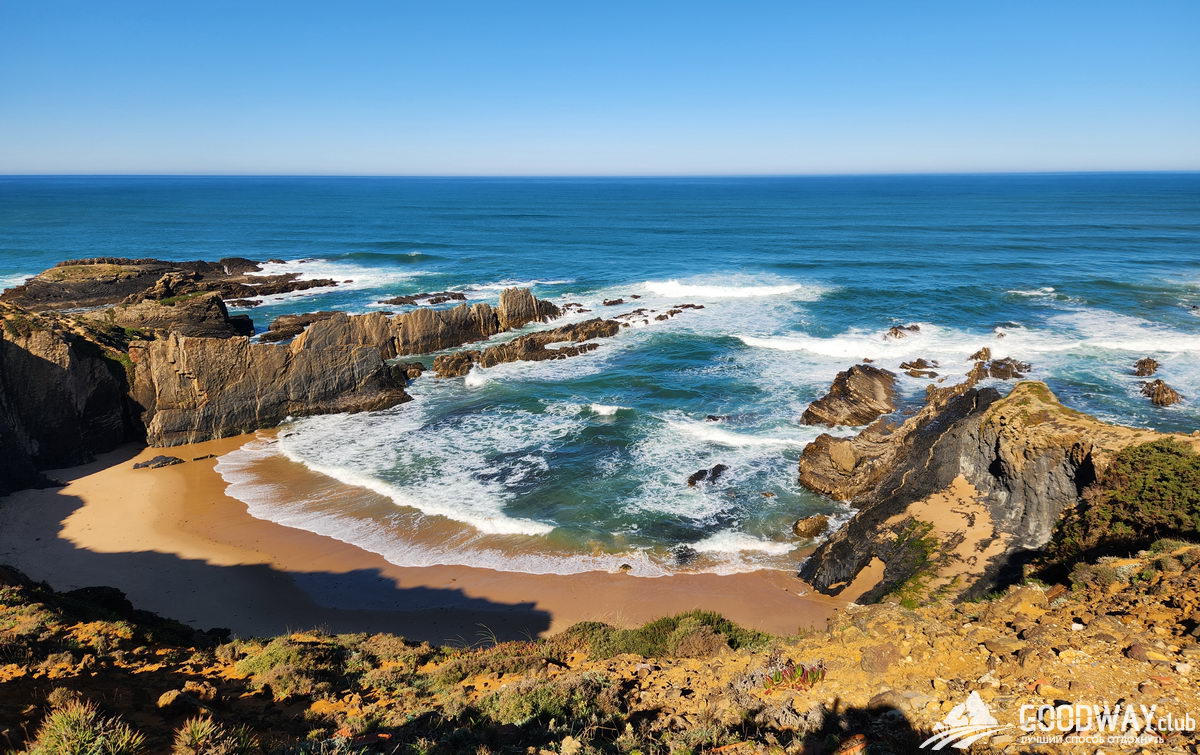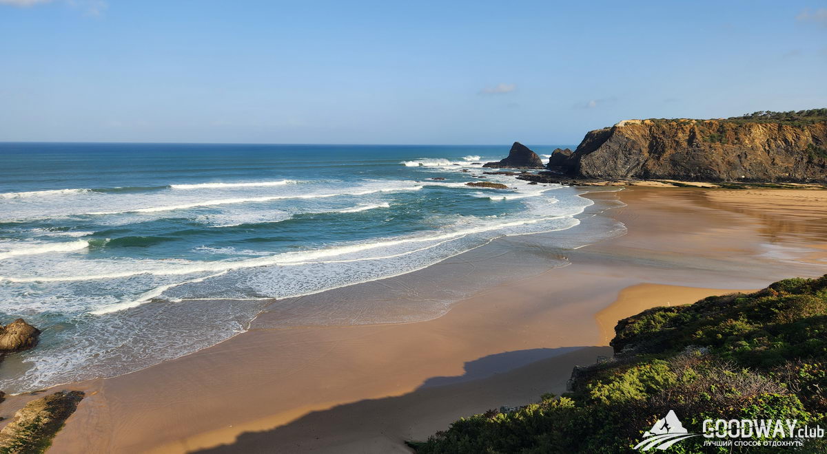 Автобусом на 9 утра едем в Синеш и затем в Сао-Торпес. Сегодня лёгкий разгонный день, который сразу начнётся с обширных пляжей. Можно купаться и попробовать бодисерфинг – катание на волнах без доски. Температура воды 15-19 градусов, зависит от сезона. Далее тропа забирается на скалы, и мы будем обозревать сверху всё мощнейшее великолепие океана.
