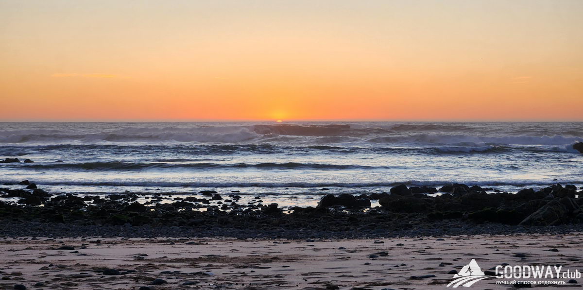 Финальный день трека. Снова пляжи, скалы, океан. И вы убедитесь, что это не надоедает! Фотоаппарат сохраняет новые виды с такой же скоростью, как и первые дни, пропустить это невозможно! Океан такой мощный и гипнотизирующий, можно и час, и два просто сидеть и смотреть на волны, ничего больше не делая. С высокой скалы мы увидим пляж Одесейше, особенность которого, что это песчаный полуостров, с одной стороны омывается спокойной рекой, а с другой стороны – бурными океанскими волнами. Сам посёлок находится в 3км от океана, так что посидеть вечером на пляже уже не получится.